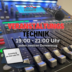 Direkt bei Lars (beruflich angehende Fachkraft für Veranstaltungstechnik) unter Technik@kulturfabrikkrawatte.de